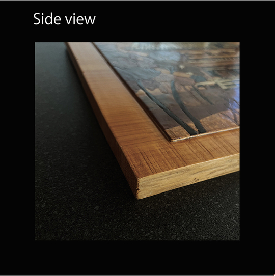 木象嵌とは、水彩画や油絵と言った表現とは又一味違う「天然木による絵画」です。